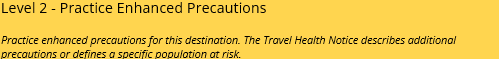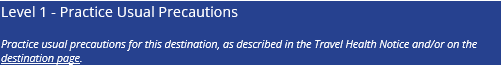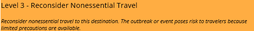 Currently there are no level 3 travel advisories for vector-borne diseases.