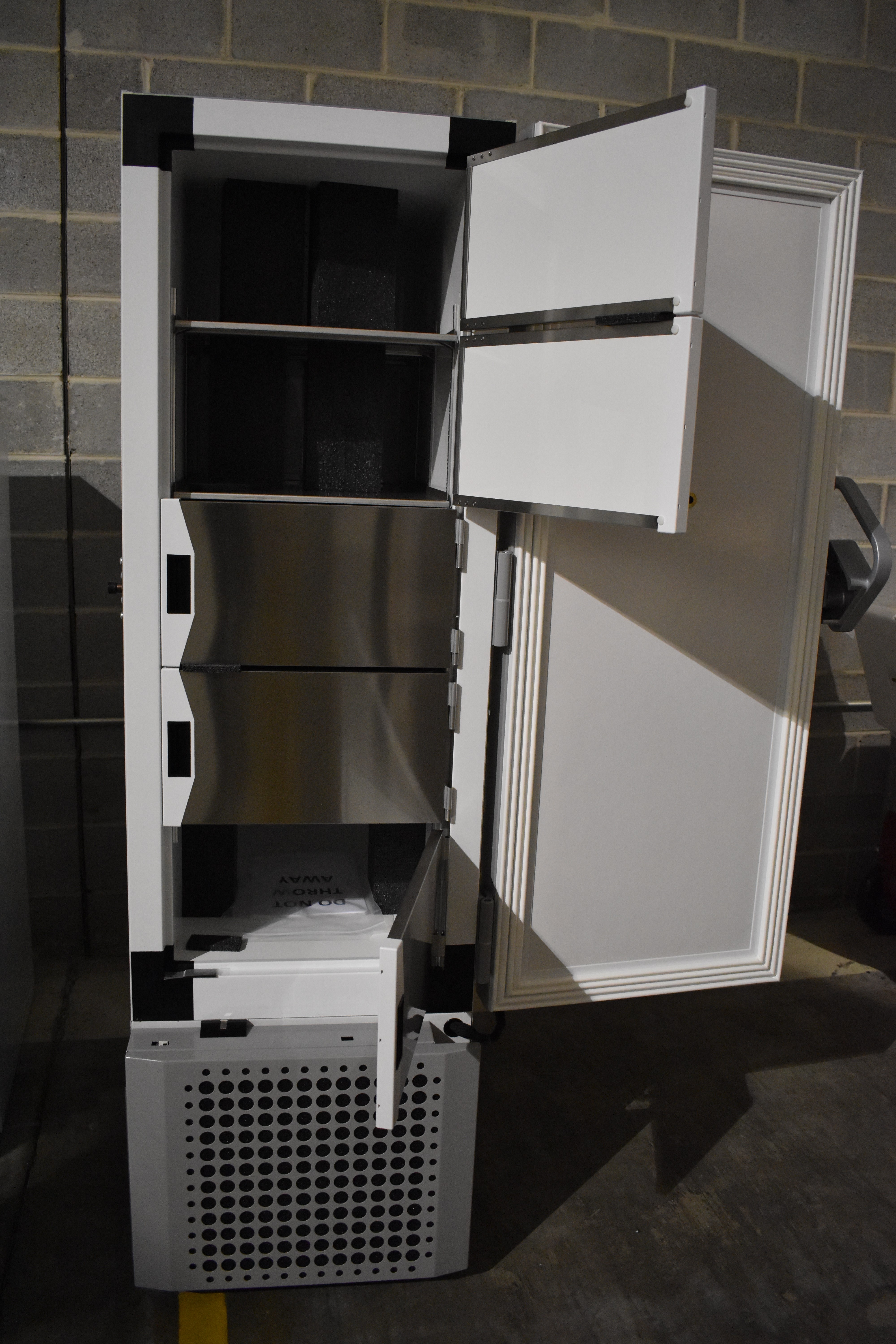 The Thermo Scientific Revco ultra-cold storage unit from Fisher Scientific has the capacity to hold nearly 300,000 doses of vaccine. This unit will allow storage of the Pfizer vaccine without the need for dry ice exchange, giving additional flexibility for vaccine distribution within the state.